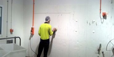 In this case we found that the ceiling spaces low temperature had caused moisture from condensation which made cleaning, surface preparation and painting more difficult. However, the confined spaces in the ceiling required the same level of cleaning and painting attention as the other production areas. Shortcuts because of difficulty, is never an option for us.
